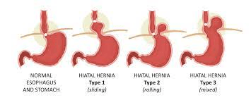 Hiatal hernia –the opening in the diaphragm (the curtain separating chest from the abdomen)through which esophagus passes from chest in to the abdomen is called hiatus. When there is weakness in this region it leads to upward movement of abdominal organs into the chest cavity through this hiatal opening. This condition is called hiatal hernia. Not all cases require surgery though. Such cases must be evaluated on case-to-case basis by an expert and if indicated surgery is the best option.
